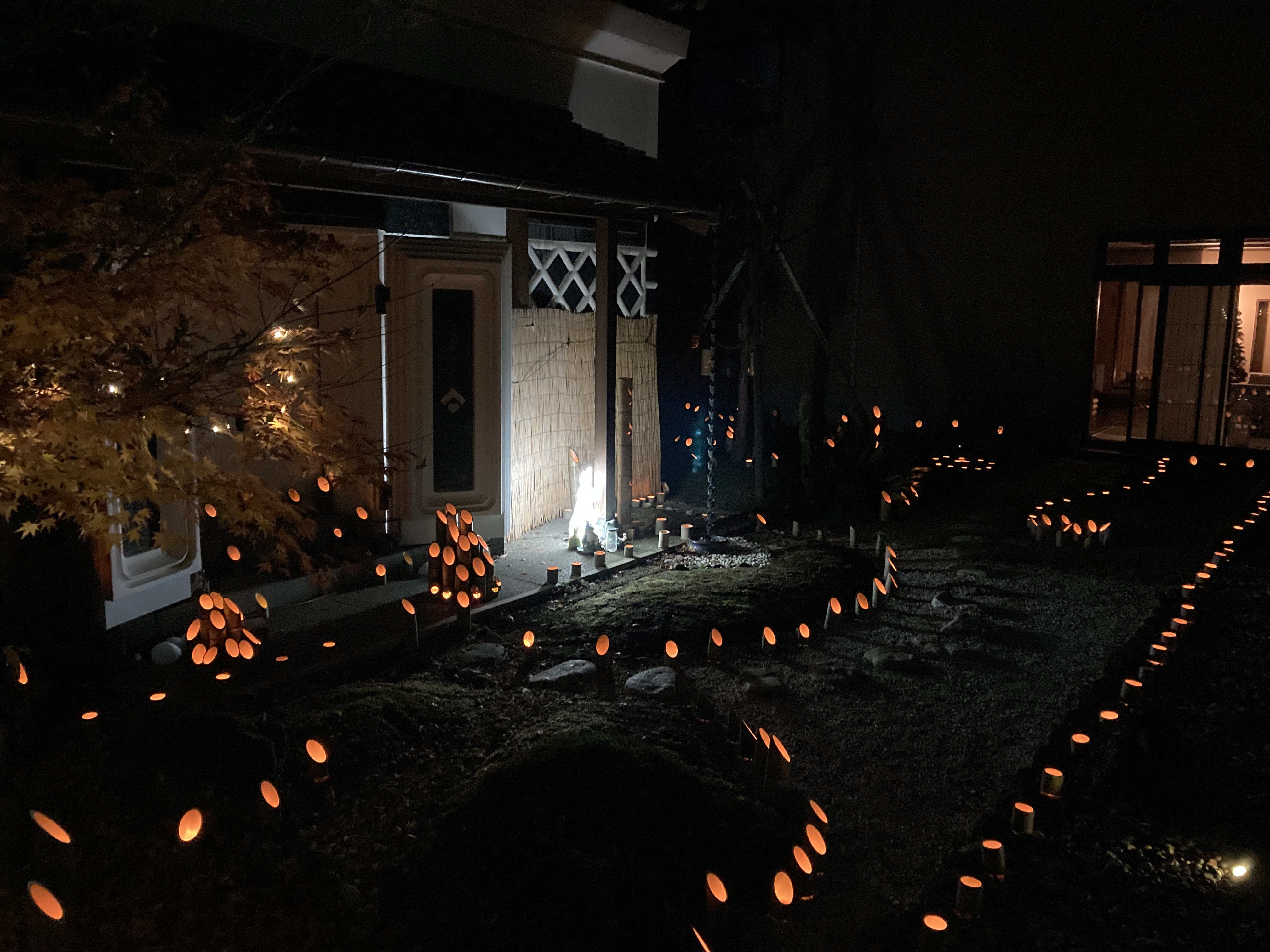 竹灯籠始めました! 天候が穏やかな日に玄関前と蔵前で竹灯籠をしております!!是非おいで下さい!!(雪が降るまでの期間)